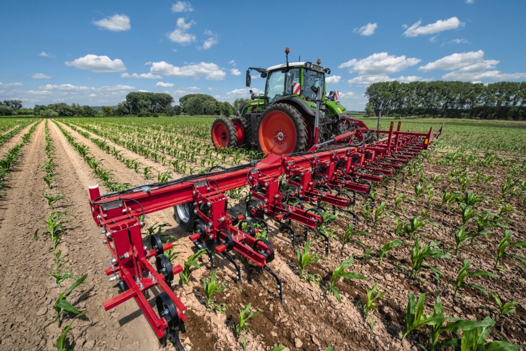 The Power+ bundle (formerly PowerPlus) on the Fendt 700 Vario is perfect for work on grassland. The Fendt 700 Vario Power+ is compatible with Fendt Guide (formerly VarioGuide). With the 12″ terminal on the armrest, track guidance functions and ISOBUS functions can now be displayed in realtime on freely assignable panes, making it much easier to control a complex attachment, such as an ISOBUS-compatible mower combination with track guidance.