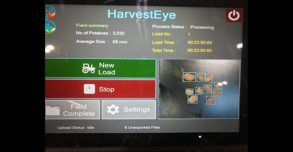 Following approximately 4 years of development HarvestEye Ltd have released a British designed, engineered and built 3D camera based technology system capable of supporting growers with a great level of insight into a harvested potato crop. Originally part of B-Hive Agritech Innovation company HarvestEye is now its own limited company and Grimme have distribution rights of the technology. The B-Hive company focus on solving existing problems in the agricultural industry and HarvestEye certainly offers some great features and benefits to potato growers.